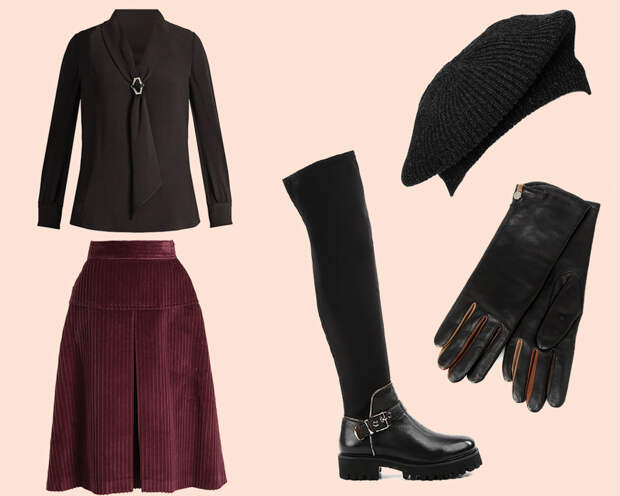 Образ для долгой городской прогулки должен быть и комфортным, и красивым одновременно. Лучше всего двум этим условиям соответствуют вельветовая юбка длины мини и ботфорты на плоской подошве. Этой осенью особенно популярны модели сапог, в которых совмещены разные материалы: фактурная замша и кожа, лаковые и матовые текстуры, текстиль, разные виды кожи и многое другое.